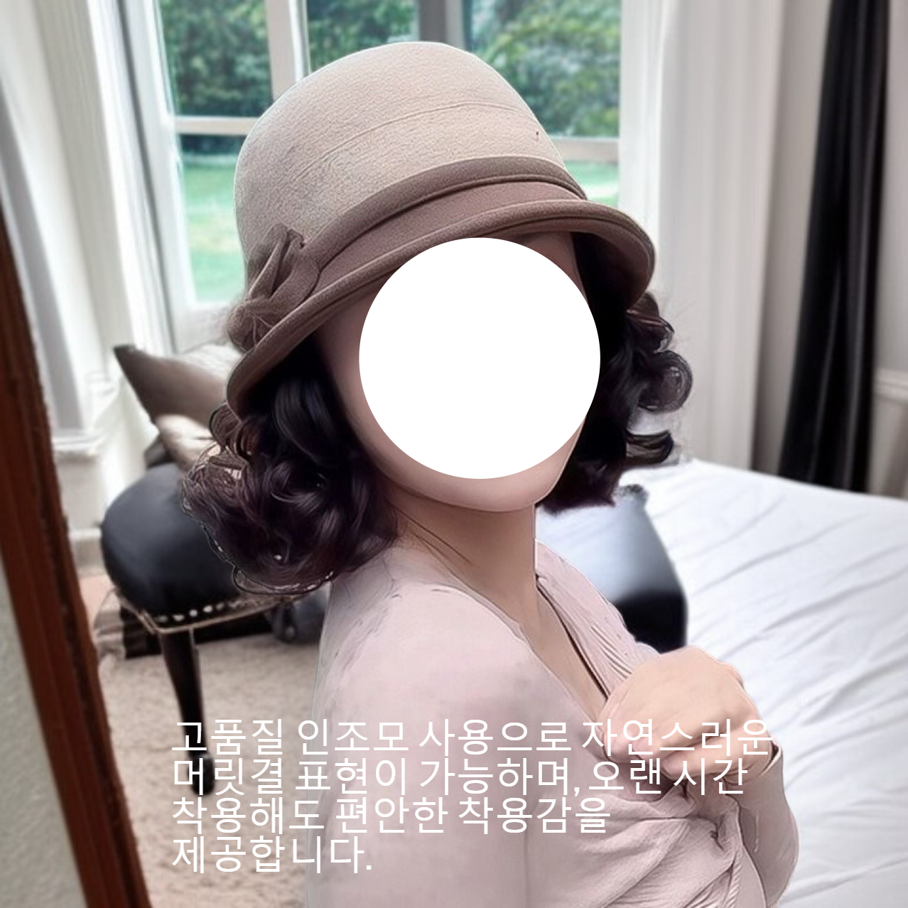 ● 고품질 인조모 사용으로 자연스러운 머릿결 표현이 가능하며, 오랜 시간 착용해도 편안한 착용감을 제공합니다.